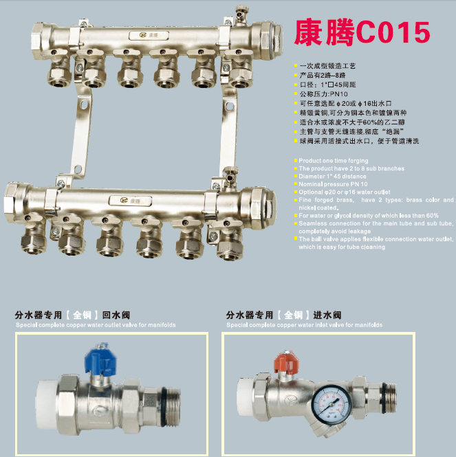 【產(chǎn)品型號(hào)】康騰C015款紅沖鍛壓一體大體銅分水器
